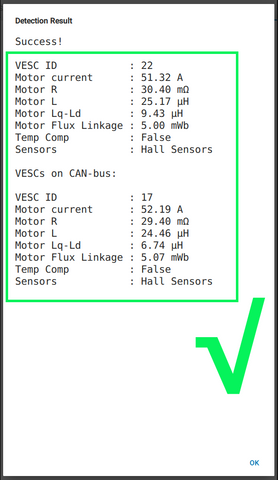 UART devices, such as UART receivers, Bluetooth modules, Davega, etc., when plugged into the ESC, may interfere with the normal reading or writing of ESC parameters. This could lead to error pop-ups in VESCTOOL, as well as abnormal FOC parameter readings. Incorrect configurations may potentially damage your ESC and motor. It is crucial to check the results after completing the FOC wizard each time. If you encounter issues with writing or abnormal readings, you can disconnect all UART devices or set the APP to "No APP" in the APP page, and then proceed with another round of FOC wizard.